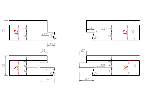 The set consists of tool elements stacked on the spindle. Their consistent inside diameter means no fence adjustments are required between tenoning and profiling- simply move the spindle up or down to switch between operations. The 15° bevel on the profile is designed for long-lasting cabinet doors which will hold finish without the serious vulnerability to dings and chips of a hard square corner.
